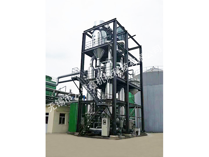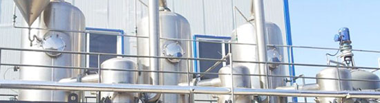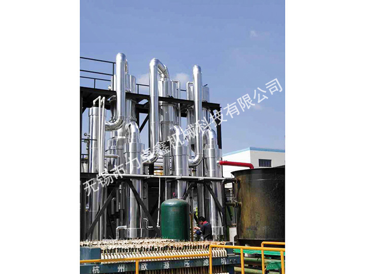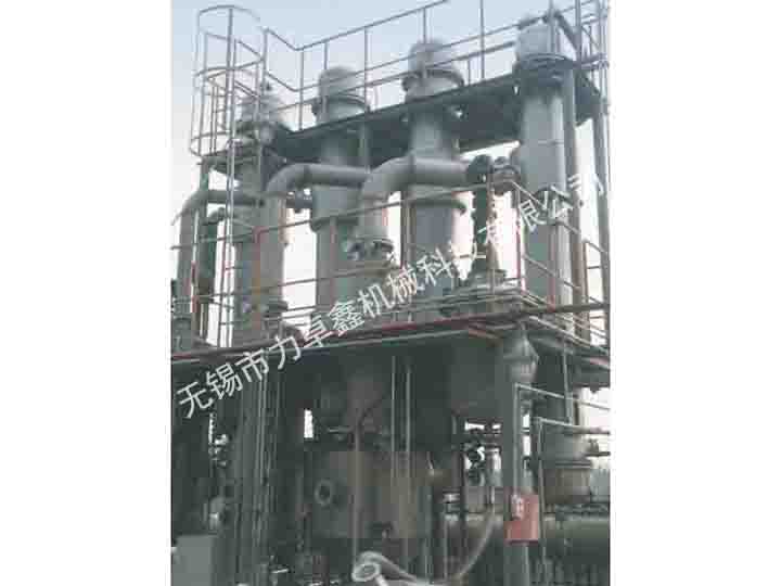 產品概述:多效蒸發(fā)器由各效加熱蒸發(fā)器、各效分離器、冷凝器、熱壓泵、殺菌器、保溫管、真空系統、各效料液輸送泵、冷凝排水泵、操作平臺、電器儀表控制柜及閥門、管路等系統組成。